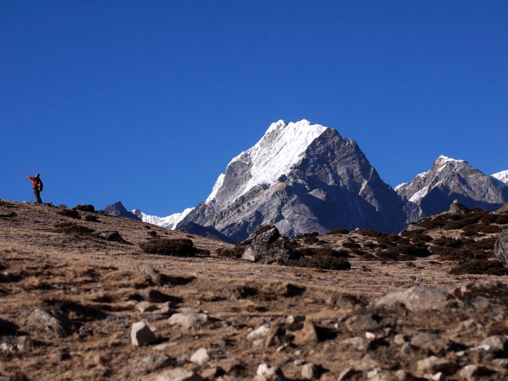 A trekker taking selfie at Everest Base Camp Trek in Nepal Himalayas with a mountain in the backdrop. Trekking in Nepal is one of the world’s premier adventure experiences, ranging from the legendary Everest Base Camp to the culturally rich Annapurna Circuit. The best times to visit are during the Autumn for clear mountain views and Spring for warmer weather and blooming rhododendrons.