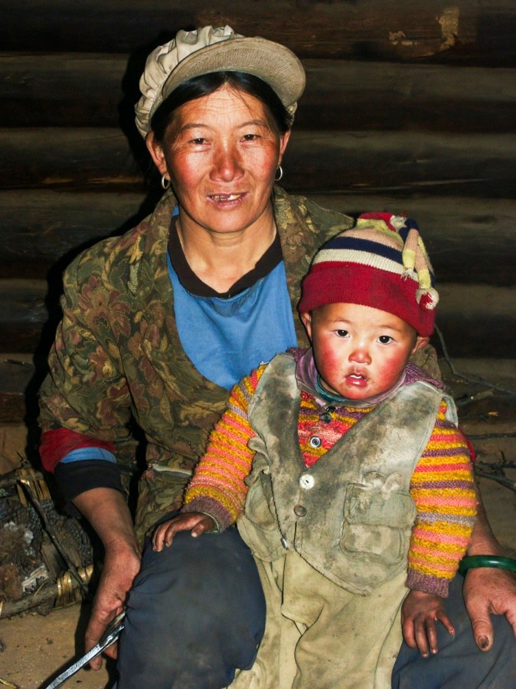 A grandmother and a grandson at there home in Lugu Lake in Yunnan, China.