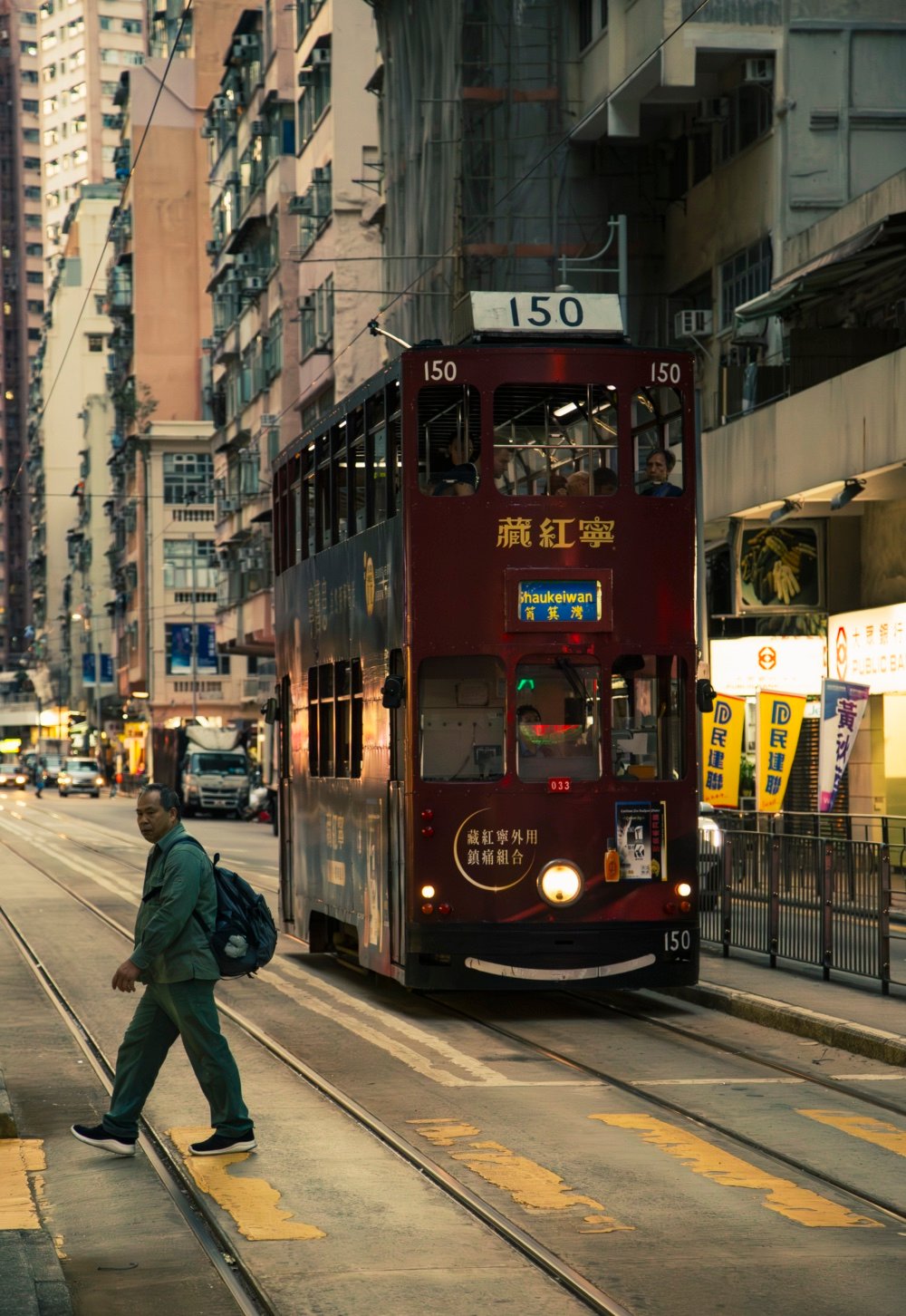The Hong Kong Tram with nickname Ding Ding runs on Hong Kong Island between Kennedy Town and Shau Kei Wan, with a branch circulating through Happy Valley.