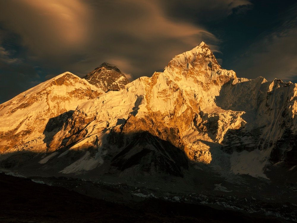 Mt. Everest (left) and Mt. Nuptse (right) in sunset.