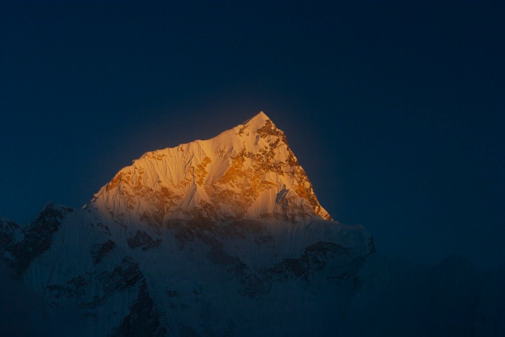 Nuptse is a dramatic, multi-peaked mountain in the Khumbu region of the Nepalese Himalayas, standing just 2 km (1.2 mi) west-southwest of Mount Everest. Its main peak, Nuptse I, reaches an elevation of 7,861 meters (25,791 ft). The mountain is famous for its massive South Face, which rises 2,500 meters and spans 5 kilometers, making it one of the most imposing sights for trekkers on the way to Everest Base Camp.