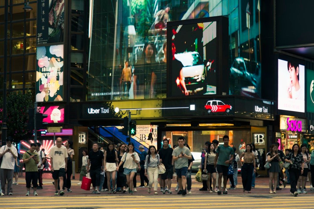 People crossing the road in Hong Kong