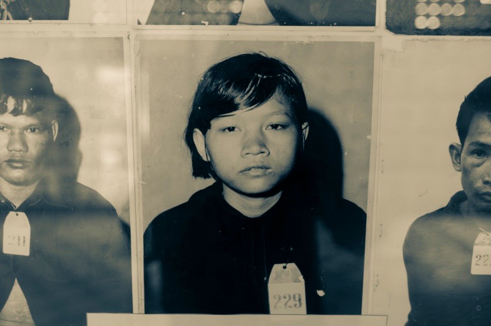 The Tuol Sleng Genocide Museum (S-21) in Phnom Penh preserves thousands of black-and-white portraits of individuals who were imprisoned and killed during the Khmer Rouge regime. These photographs were meticulously taken by the prison staff as part of their administrative record-keeping for the approximately 14,000 to 20,000 people processed at the site between 1975 and 1979.
