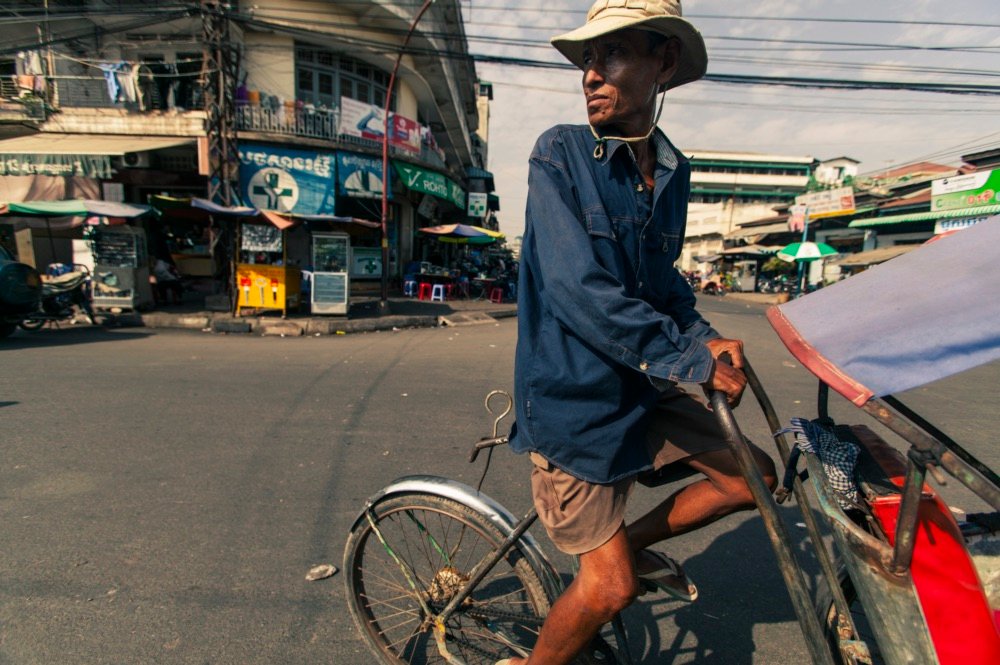 Rickshaw man in Phnom Penh, Cambodia