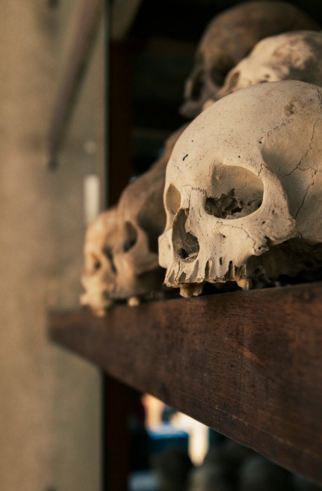 Skulls of victims at the Killing Fields Museum in Phnom Penh, Cambodia
