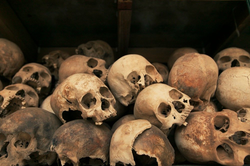 Skulls of victims at the Killing Fields Museum in Phnom Penh, Cambodia