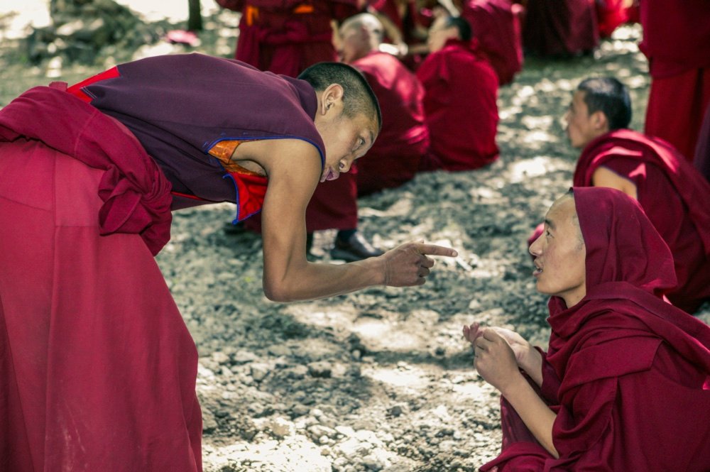 Tibetan monks practice philosophical debates (choying) at Sera Monastery in Lhasa. These debates are not merely theoretical but a rigorous, physically animated and intellectually demanding method for Tibetan monks to study, challenge and deeply understand Buddhist philosophy. These debates are primarily taking place at Sera Monastery and Drepung Monastery in Lhasa.