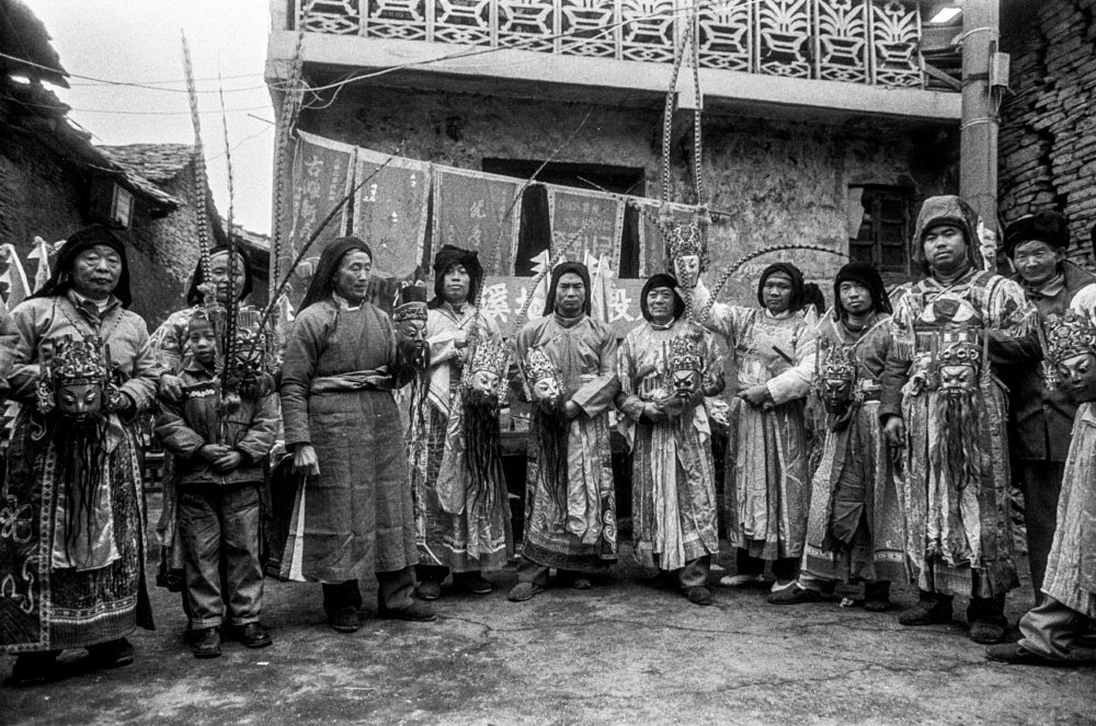 . Performed by villagers on open ground during the Spring Festival, actors wear elaborate wooden masks on their foreheads to honor ancestors and ward off evil.